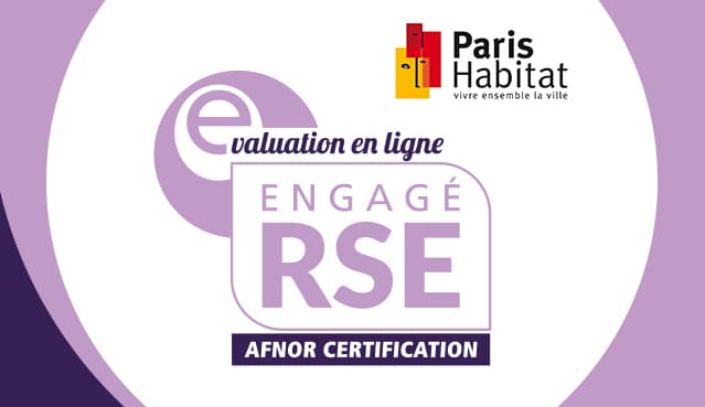 L'engagement est dans notre ADN ! C'est avec fierté que Paris habitat annonce son score de 90/100 pour sa démarche de responsabilité sociétale (contre 56/100 en 2017 et une moyenne générale des entreprises de 58,2/100). Cette certification délivrée par l'AFNOR est pour Paris Habitat un outil de pilotage stratégique offrant une vision des activités élargie aux questions environnementales, économiques, sociales et sociétales.
