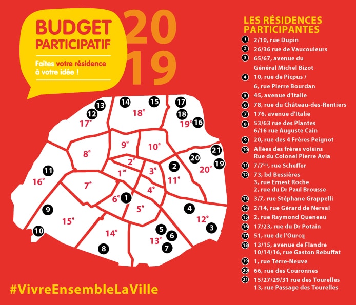 Paris Habitat lance son troisième budget participatif avec toujours la volonté d’offrir à ses locataires la possibilité de participer directement à l'amélioration de leur cadre de vie « en faisant leur résidence à leur idée ». Le budget participatif permet à tous les locataires de proposer des projets qui répondent au mieux à leurs attentes d’usager de la résidence. L’objectif est également de favoriser les discussions et permettre la mise en commun d’intelligence. Ce mode de concertation et de participation aux décisions qui concernent l’amélioration de leur cadre de vie contribue activement à renouveler la relation bailleur/locataire.