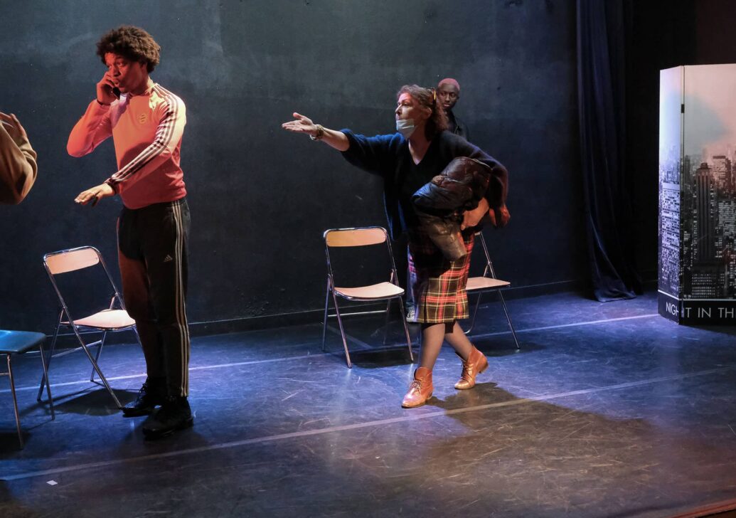 Une scène, 4 chaises. Et cinq jeunes en impro. Douce, quasi silencieuse pour commencer avant que le ton ne s’emballe, sous les rires des spectateurs. Ces jeunes acteurs partagent la scène du Centre Paris Anim Louis Lumière (20e). Ils décrivent là une scène de vie. Un sans domicile fixe fait la manche dans le métro, ils exposent les réactions des passagers. Cette scène d’improvisation est le rendez-vous hebdomadaire fixé par l’association Plus loin, implanté dans le quartier Saint-Blaise (20e) et de son Laboratoire d’expression et de création, le Labec, créé en 2016.