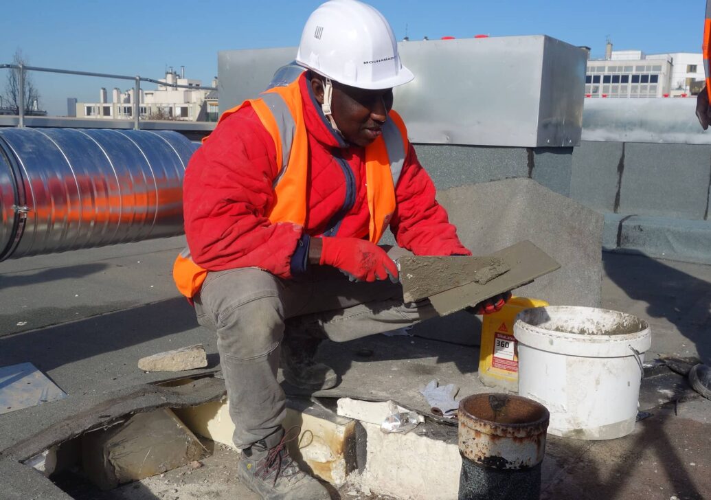 Il est 7h15 et la résidence Contenot-Decaen (12e) se réveille tout doucement. Nous retrouvons sur place Mouhamadou qui, comme tous les jours depuis 3 mois, se prépare avant de débuter sa journée de travail. Pourtant cet homme au sourire expressif n’habite pas ici, il ne fait pas non plus partie des équipes de Paris Habitat. En effet, Mouhamadou est maçon sur l’opération de réhabilitation Plan Climat actuellement en cours au sein de la résidence. Comme deux autres de ses collègues, il bénéficie d’un programme d’insertion professionnelle de deux ans comportant de la formation théorique et la validation des acquis professionnels sur le terrain. « J’aime mon travail et j’ai la chance de bénéficier d’un double accompagnement avec mon chef de chantier et ma conseillère en insertion » confie-t-il.