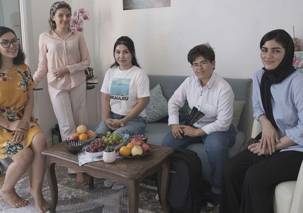 Fatima est étudiante en médecine. Mina est peintre. Najellah veut poursuivre ses études de sciences politiques parallèlement aux cours de français qu’elle suit déjà. Shabaam veut à présent devenir entraineuse de football. Avant de quitter l’Afghanistan, elle était joueuse professionnelle et militait pour le droit des femmes. Quant à Zahra, elle était journaliste. A son arrivée en France, elle a intégré une troupe de théâtre en province puis s’est rendue à Paris. Toutes cinq nous font face. Elles ont entre 25 et 30 ans et laissent entrevoir un mélange saisissant de détermination, de force et de tristesse. Toutes cinq, originaires des différentes provinces du pays, ont quitté l’Afghanistan lors de la prise de pouvoir des Talibans à Kaboul en août 2021. Une obligation. Autant due à leurs engagements pour les droits de l’homme, pour le droit des femmes, à leur opposition au régime religieux qu’à leur refus « de ne plus pouvoir continuer à vivre, de ne plus pouvoir rêver, la promesse d’une vie emprisonnée ».