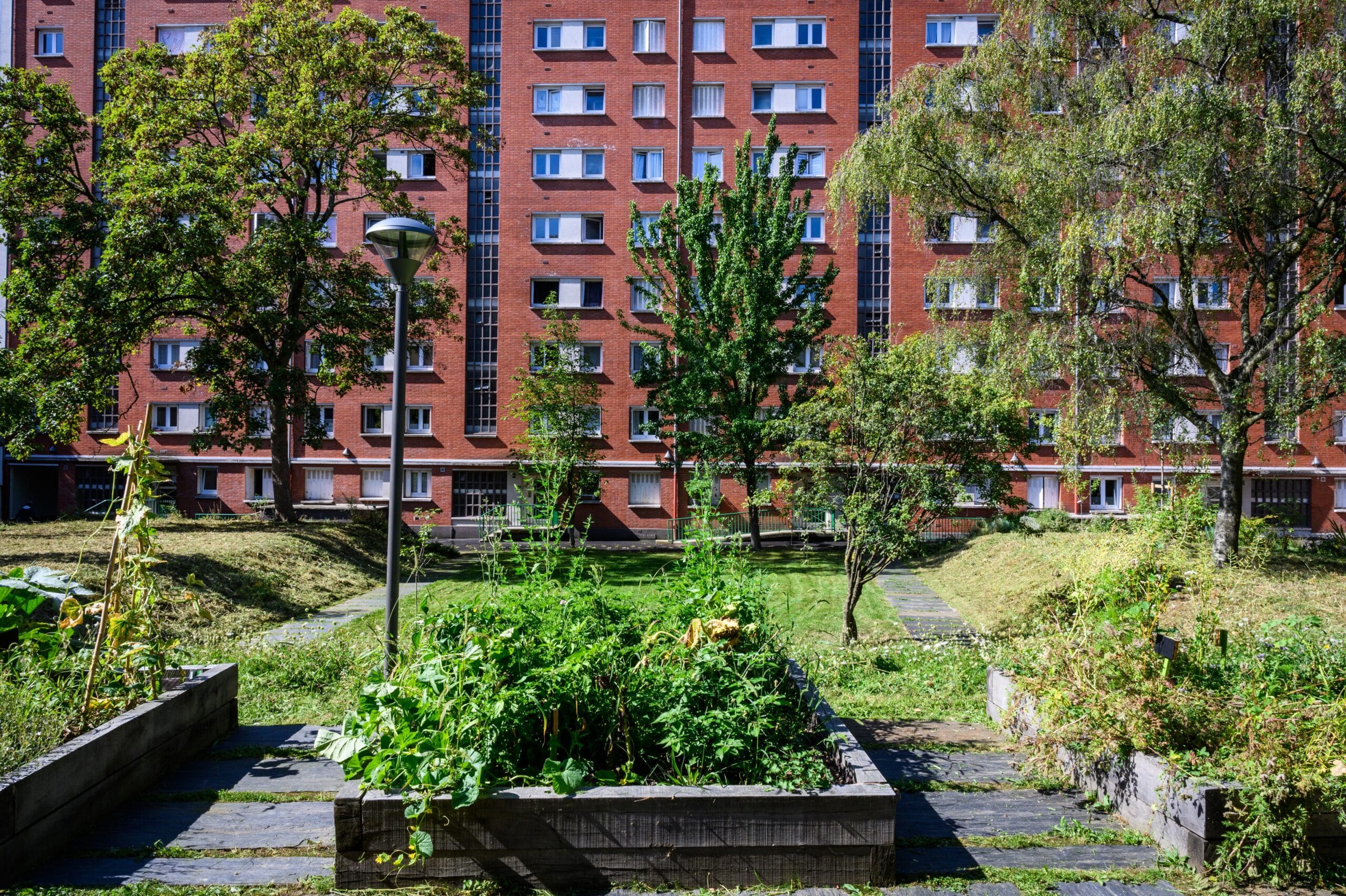 Enfin, dans le contexte d’urbanité que nous connaissons, Paris Habitat prend en compte l’impact des immeubles, de la densité des murs, de la minéralité des cours qui tendent à freiner la circulation de l’air et l’empêchent de se refroidir. Aussi, fort de ses 108 hectares d’espaces verts et des près de 13 000 arbres qui composent déjà son patrimoine arboré, l’Office continue à privilégier la végétalisation des espaces et les plantations qui apportent une protection solaire naturelle. Ces projets qui s’inscrivent notamment dans le cadre des opérations de réhabilitation, prévoient la déminéralisation des cours, la pose de pavés enherbés, de sols en graviers ou en copeaux de bois perméables et ainsi, une meilleure infiltration des eaux.