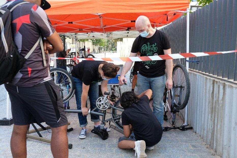 L'organisation depuis le 24 juin 2020 et pendant un an, dans les pieds d'immeubles, de 200 ateliers, gratuits, d'autoréparation s'inscrit dans cette démarche. Cette initiative, conclue avec le Réseau parisien des ateliers vélo participatifs et solidaires (RéPAR), vise à la remise en état de fonctionnement d'un vélo abîmé ou hors d'usage mais aussi à un enseignement afin que les participatifs apprennent par eux-mêmes.