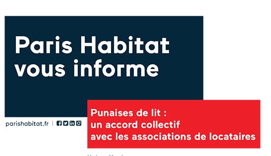 Si le phénomène ne s’aggrave pas, les traitements sont onéreux et parfois complexes. S’agissant d’une problématique commune, et sur laquelle nous avons besoin de responsabiliser l’ensemble des locataires, Paris Habitat a décidé d’engager avec les représentants des locataires une démarche collective pour poursuivre efficacement l’éradication des punaises.