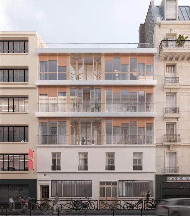 Les logements (2 T1, 1 T2, 1 T3 et 1 T4), d’une surface comprise entre 47 m² et 72 m², seront répartis en trois PLAI et deux PLUS. Traversant à partir du T2, ils offriront de larges surfaces vitrées, des jardins d’hiver et un jardin partagé de 33 m² sur le toit, ouvrant sur les toits de Paris.